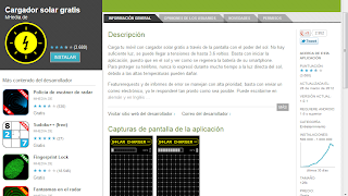 Y bueno...la ecológica Miyita se metió a ver la página de aplicaciones de android gratuitas buscando algo bueno bonito y gratuito que la ayudara con celu y a su vez que ayudara al planeta y oh! maravilla...de pronto ve un cargador solar gratis como aplicación para su android.
